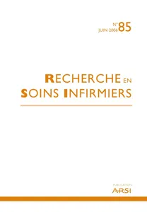 June 2006 No 85, 2006/2 - pagesPages 4 to 4Conference on qualitative researchBy Monique FormarierPages 5 to 13Stress, health, and the role of the personality: Some tools for assessing personalityBy Marcel LourelPages 14 to 21The question of observation scales from the human sciences applied to healthBy Dominique DesjeuxPages 22 to 35Analytic techniques for survey data: The example of artificial insemination and donor anonymity—Or, how to clarify a social debateBy Philippe CiboisPages 36 to 45Humor in the nurse-patient relationship: Literature reviewBy Hélène Patenaude, Louise Hamelin-BrabantPages 46 to 64Factors connected to the premature abandonment of nursing careers: Confirmation of their impact after a year through a longitudinal analysis of carers in the PRESST/NEXT studyBy Carine Jasseron, Madeleine Estryn-Béhar, Olivier Le Nézet, Isabelle RahhaliPages 65 to 76From providing care to thinking about health care, or the difficulty in putting nursing practice “into words”By Marie-André Vigil-RipochePages 77 to 85What is the place of the health care executive in the internal contract formalization process?By Lydie Rivaldi